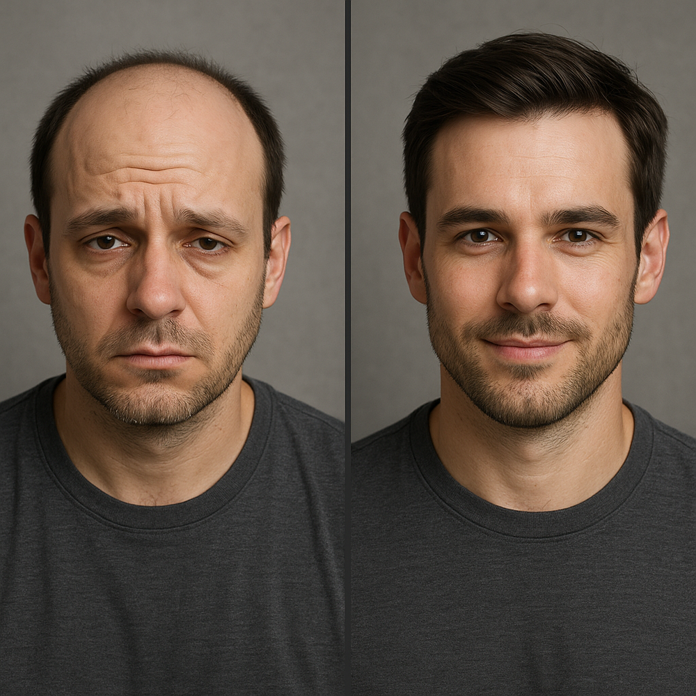 Cabello revitalizado, cuero cabelludo sano, folículos activos al 100%.