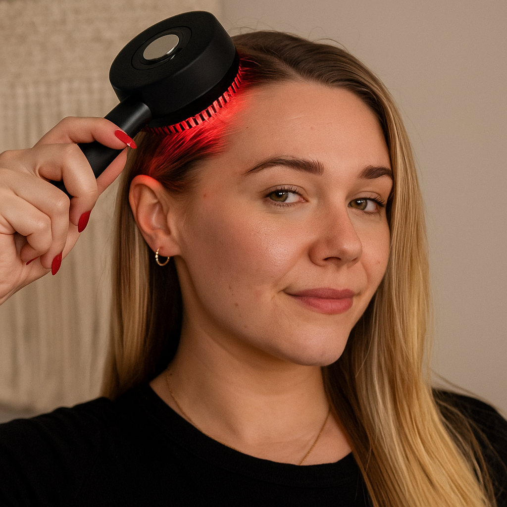 La Terapia de Luz Roja Aurora funciona en la longitud de onda ideal de 800 nanómetros, reactivando los folículos capilares inactivos.